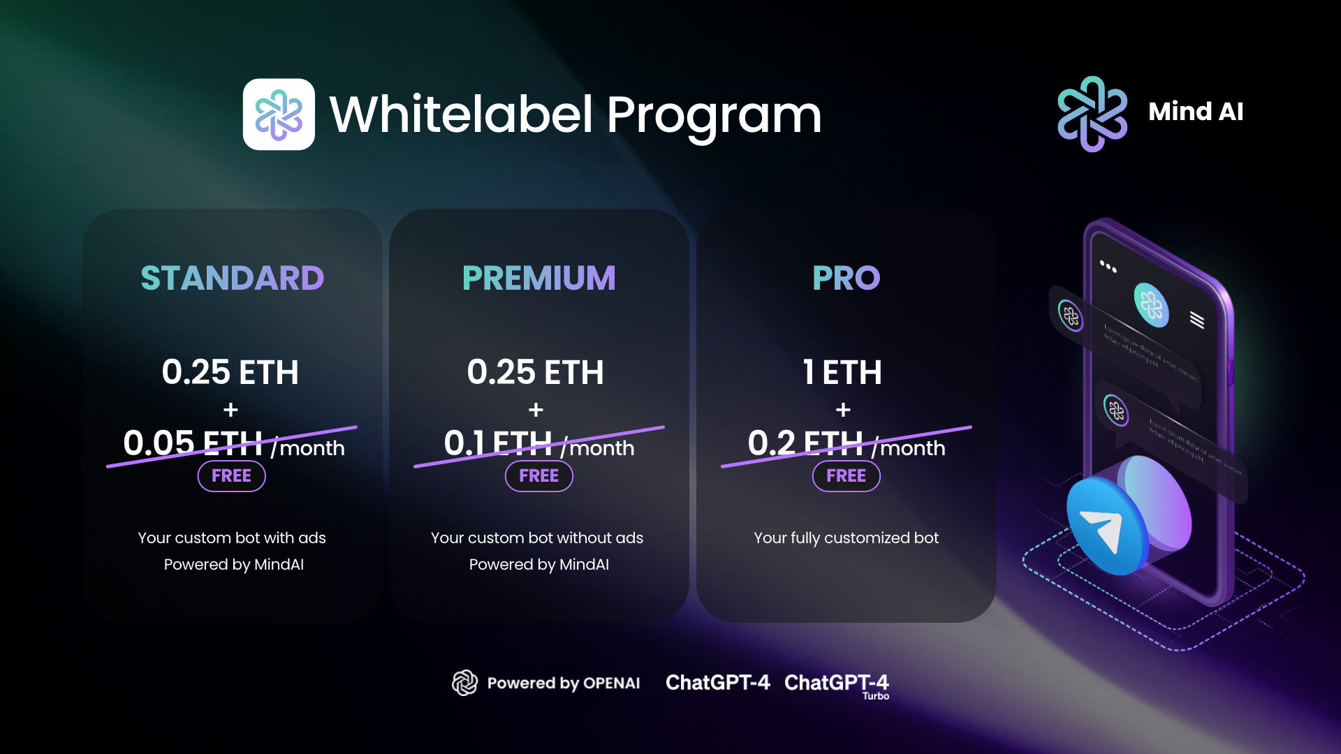 Leverage the power of decentralized AI by incorporating it into your brand! You will have the chance to create your bot using the MindAI platform. This is your opportunity to customize a never-before-seen AI bot that perfectly aligns with your project's needs.